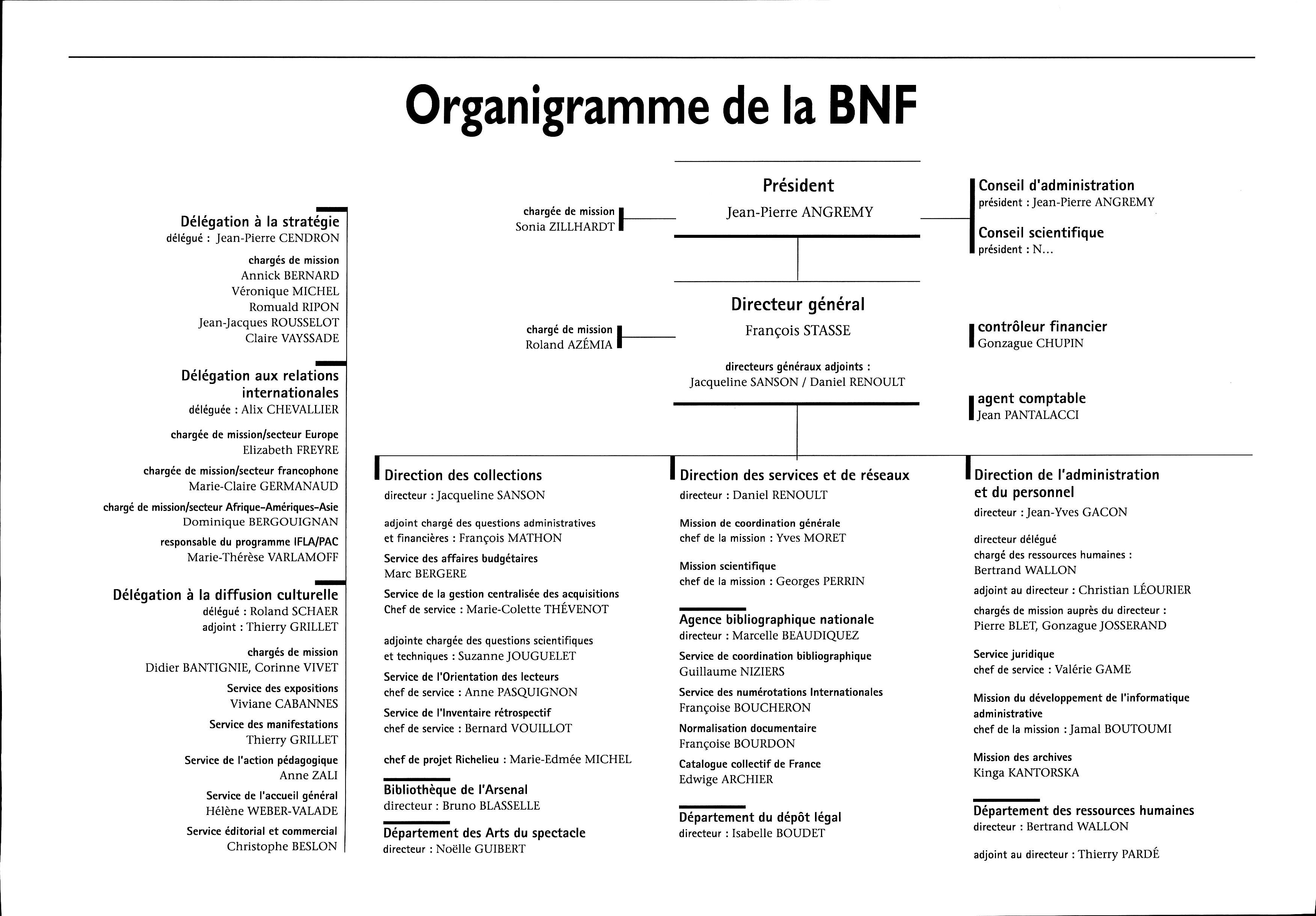 Du premier dépend le gros Service de la gestion centralisée des acquisitions, qui réceptionne et répartit les monographies commandées par les départements thématiques, qui gère les abonnements, reçoit, bulletine, réclame et distribue les périodiques demandés par les départements thématiques.