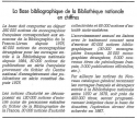 Présentation du système de gestion bibliographique en ligne mis en place à la Bibliothèque nationale, conformément au schéma directeur de 1981. Le système retenu, GEAC, a été adapté aux besoins spécifiques de la Bibliothèque nationale; ses modules de catalogage et d'interrogation sont les premiers développés. Au démarrage du système en 1985, la base contiendra 350000 notices (monographies françaises depuis 1975, monographies étrangères depuis 1984, publications en série françaises depuis 1975); l'accroissement annuel sera d'environ 60 000 notices. Par ailleurs, le recensement du Nouveau catalogue général 1970-1979 sera intégré d'ici 1987. La saisie comme l'interrogation seront effectuées en ligne sur les 200 terminaux mis progressivement à la disposition des catalogueurs et des lecteurs dans les deux prochaines années. De nombreuses clés d'accès permettront la recherche dans les fichiers. Ce système qui repose sur la gestion d'une base de données unique et centralisée, partagée par tous les services, suppose une redistribution des tâches dans le cadre d'une nouvelle structure : constitution de trois chaînes de traitement regroupant chacune les fonctions d'entrée et de catalogage par catégorie de documents (ouvrages français, étrangers, périodiques), création d'un centre de coordination assurant la cohérence sur le plan technique et bibliographique. A plus long terme sont prévus l'extension du système à d'autres types de documents et le développement d'autres fonctions de gestion.