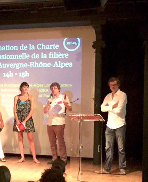 Ce projet de charte interprofessionnelle s’inscrit dans la continuité de groupes de travail formés lors des précédentes éditions. L’objectif est de faire exprimer par écrit ce qui rapproche les professionnels, les lie, au-delà de ces logiques de métiers. La proclamation et la présentation de cette charte marquent le point d’orgue de cette 4e édition des RIL (Rencontres interprofessionnelles du livre, N.D.L.R.). C’est une sorte d’acte symbolique, pour rappeler à tout le monde ce qui fait la force du livre, rendre visible la pluralité des métiers, évoquer l’importance des commerces que sont les librairies, des éditeurs, des auteurs pour une grande région. Ainsi, ce document d’une dizaine de pages mentionne tous ces grands axes de l’interprofession.